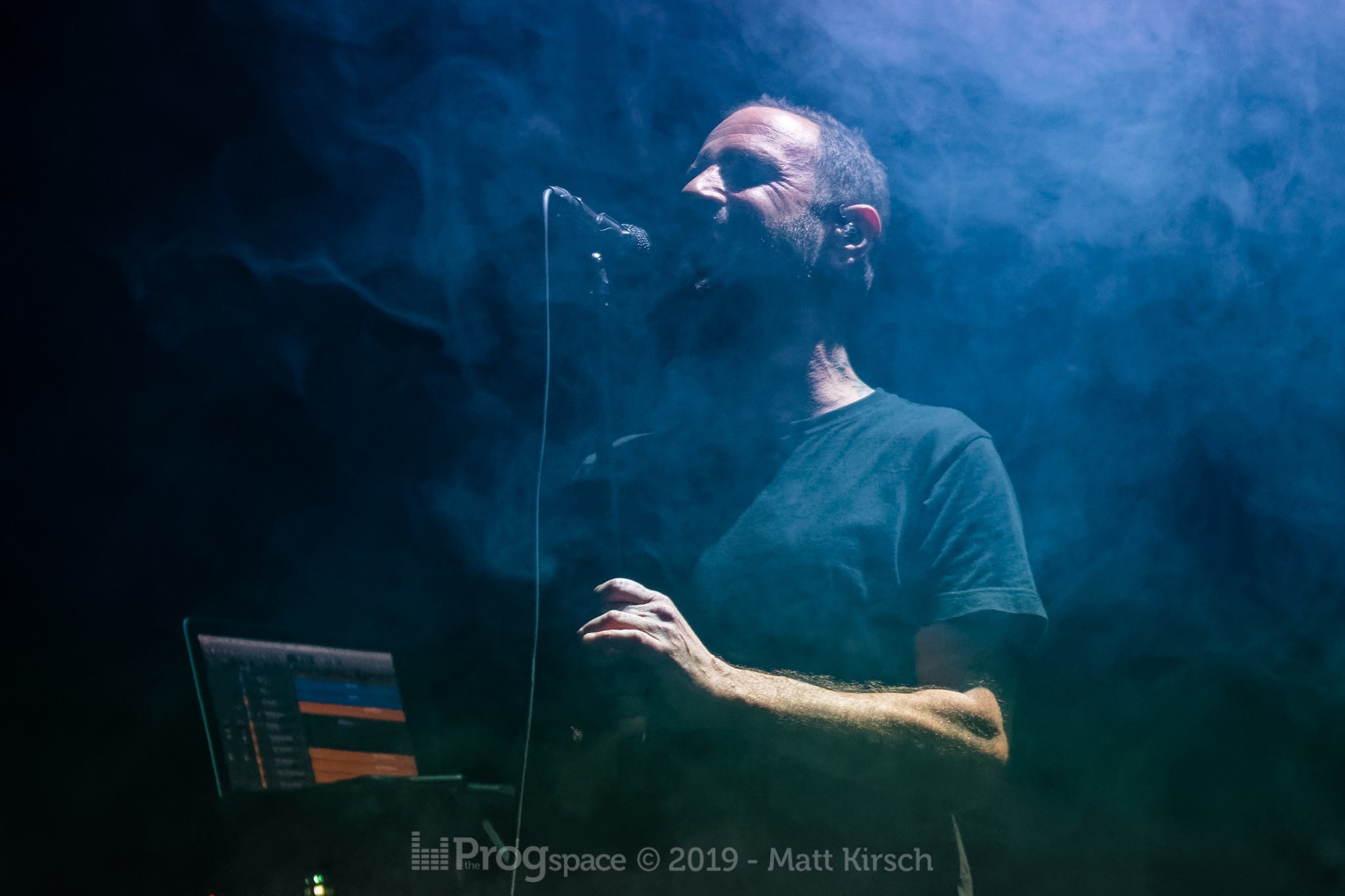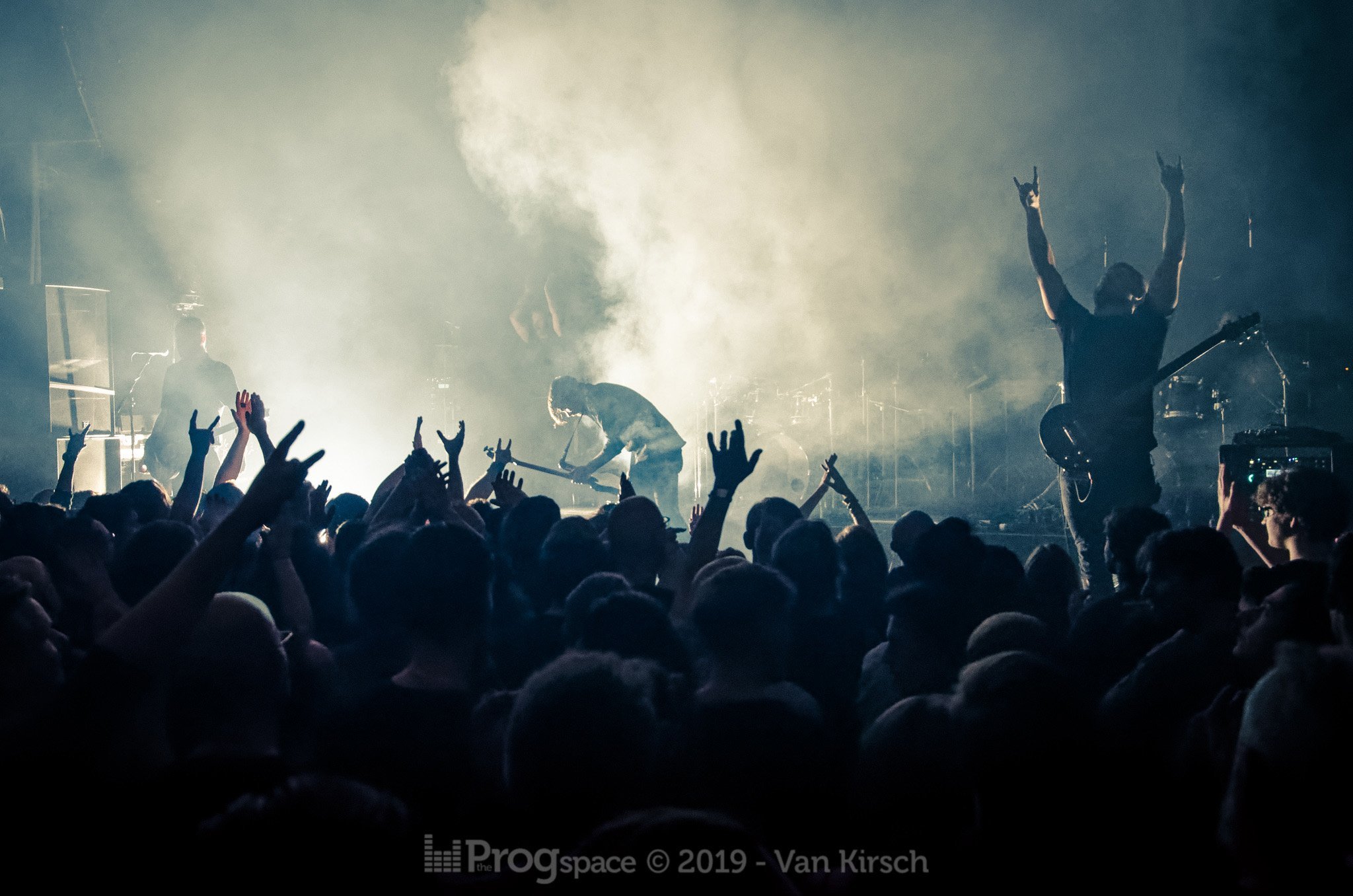 When The Ocean Collective were ready on stage, they had already lifted their own backdrop displaying imagery from their most recent album, but to no use as the darkness and smoke which characterizes their show made it impossible to be seen at all. There were some sound problems with the volume of the voice at the start of the show, or so I thought, and indeed later I got told by some friends they noticed it too. It was quickly fixed and the show ran smoothly. Chris Edrich is also behind the sound console desk for The Ocean, so it was guaranteed the sound was going to be superb as it surely was!