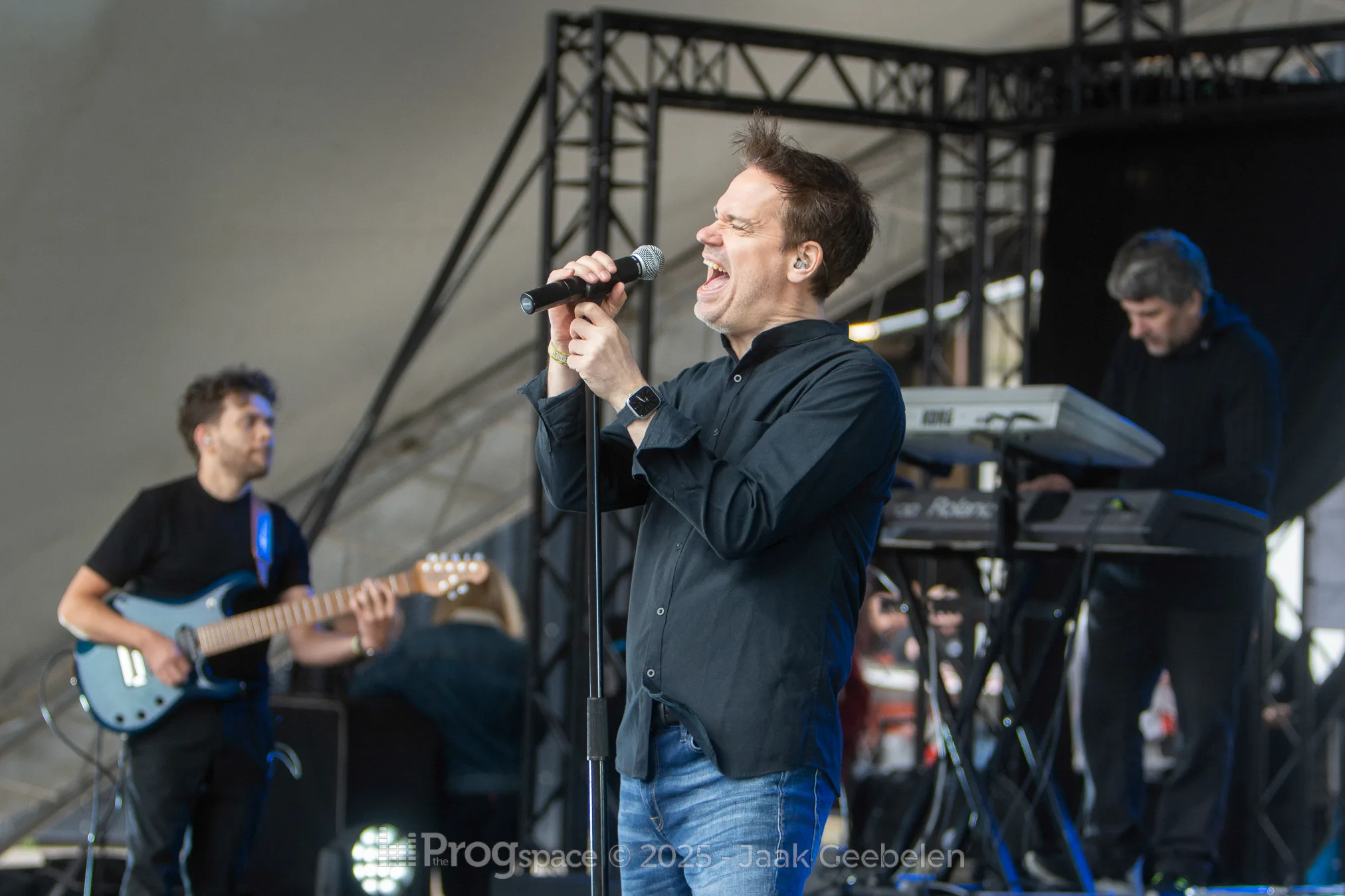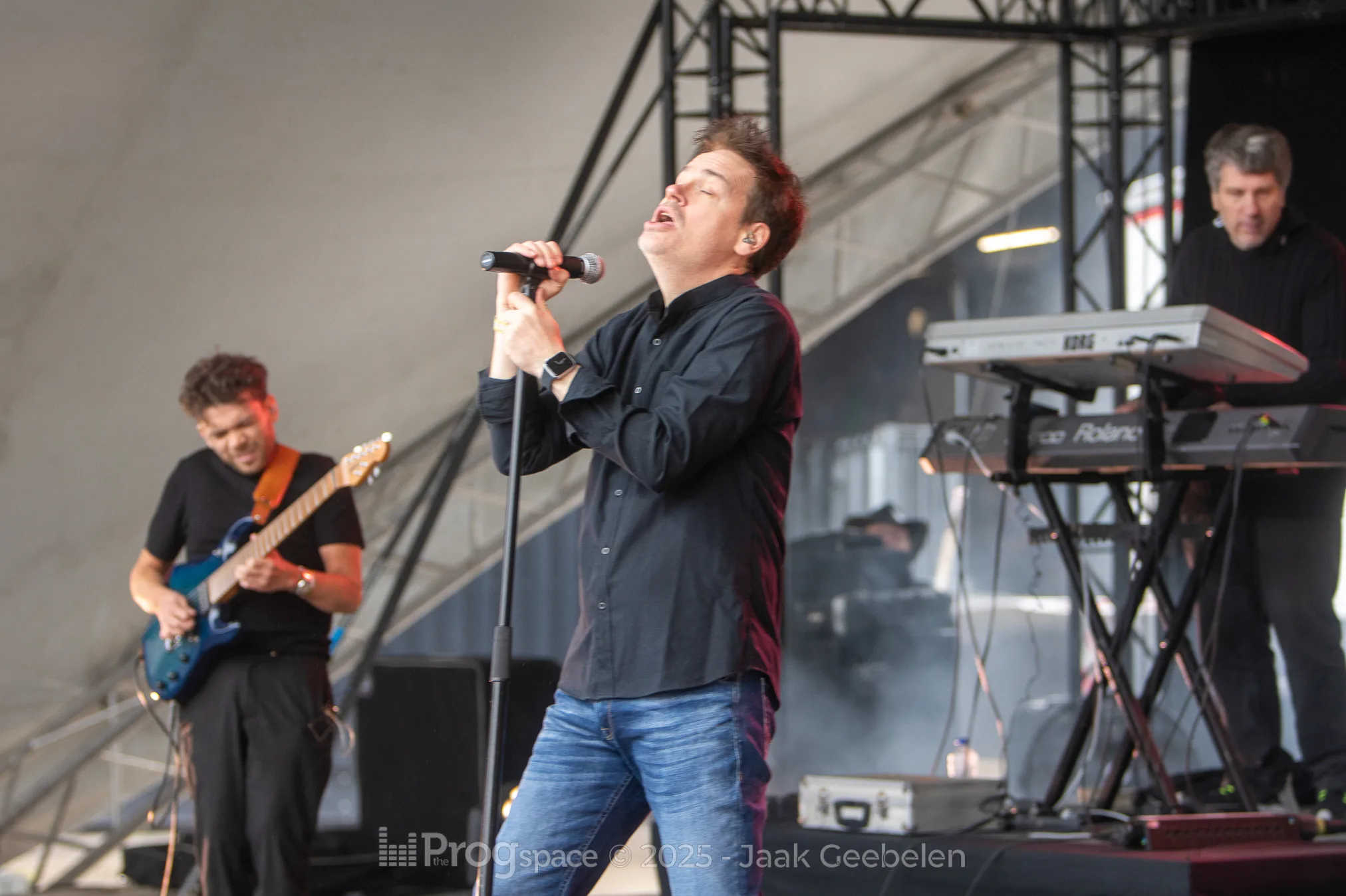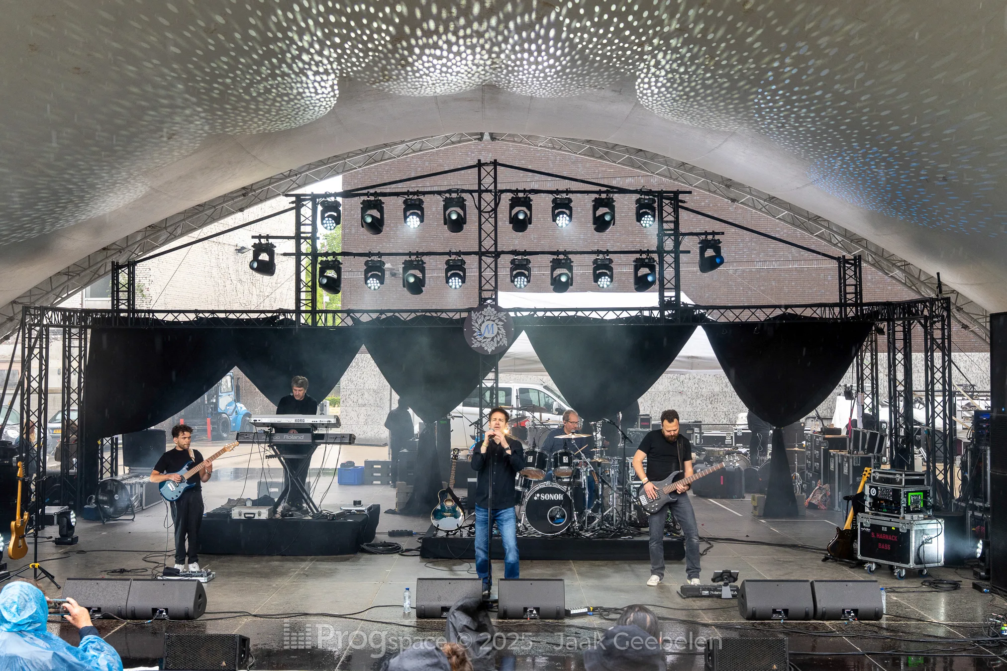 Sylvan took the stage as the second band on day two of the Midsummer Prog Festival, delivering an atmospheric and emotionally charged set of melancholic neoprog, infused with Floydian elements and a strong sense of melody. Unfortunately, the weather didn’t cooperate—steady rain forced the audience to don the rain ponchos provided by the festival. The summer vibe may have been absent, but it hardly diminished the musical intensity of the performance.